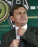 Schlips der Borussia in die Kamera hält.![]() ![]() Doch die Liga ist gespalten. In die Lockeren und die Schlips-Träger. Rolf Rangnick saß entspannt und locker auf seiner Trainerbank, ![]() ganz in grauem Sport-Dress, als seine 96 die Bayern an die Wand spielten. Von Huub Stevens wissen wir auch, daß er immer locker im Sports-Dress erscheint. Sicherlich der souveränste Trainer in der Außen-Erscheinung. Auch Kurt Jara vom HSV, Mathias Sammer von Dortmund, Friedhelm Funkel in Köln,